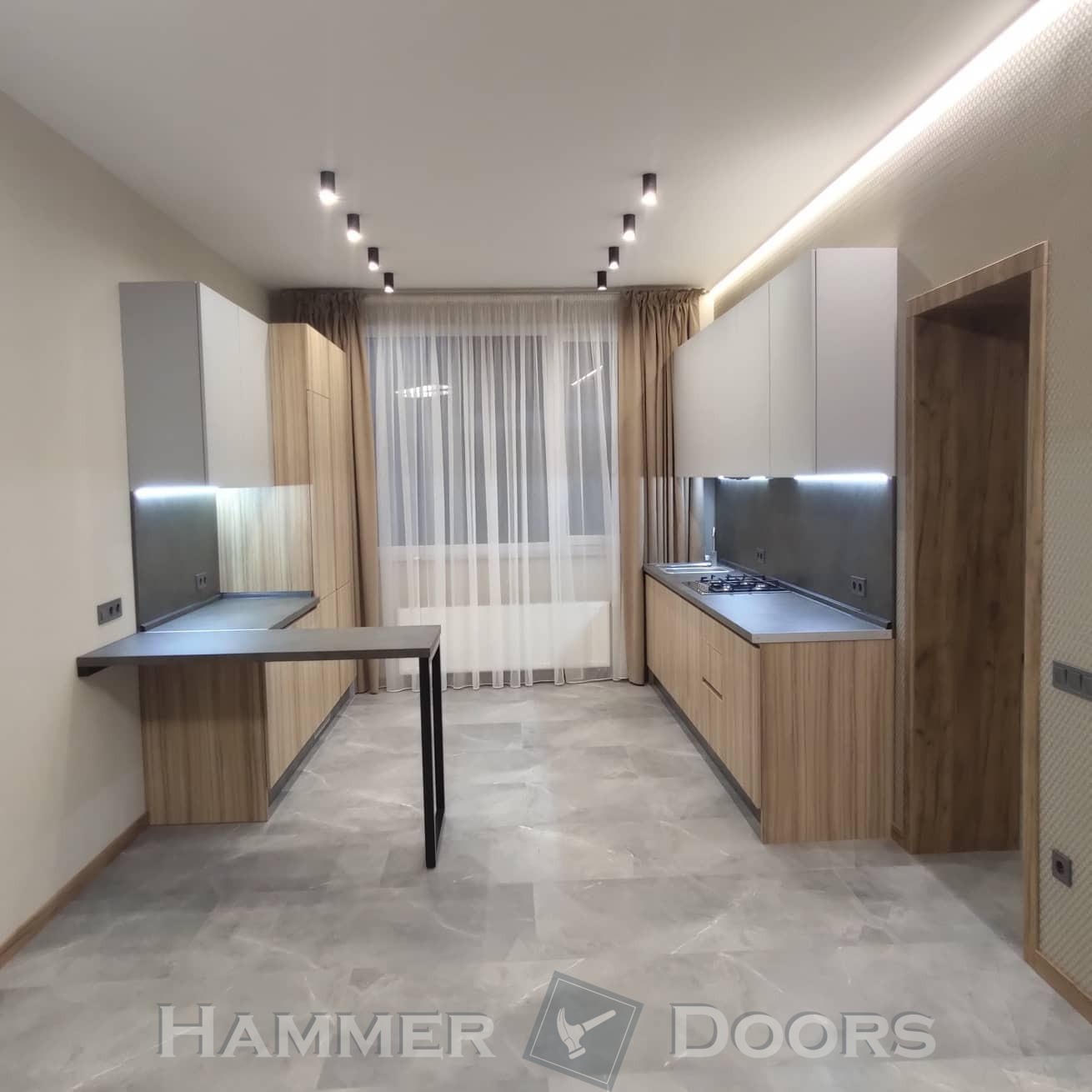 Кухня с антресолями и винным шкафом