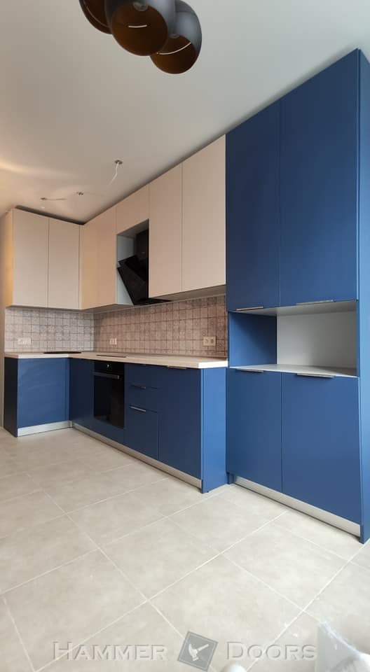 Угловая кухня с ламинированными МДФ фасадами. ПВХ Soft-touch