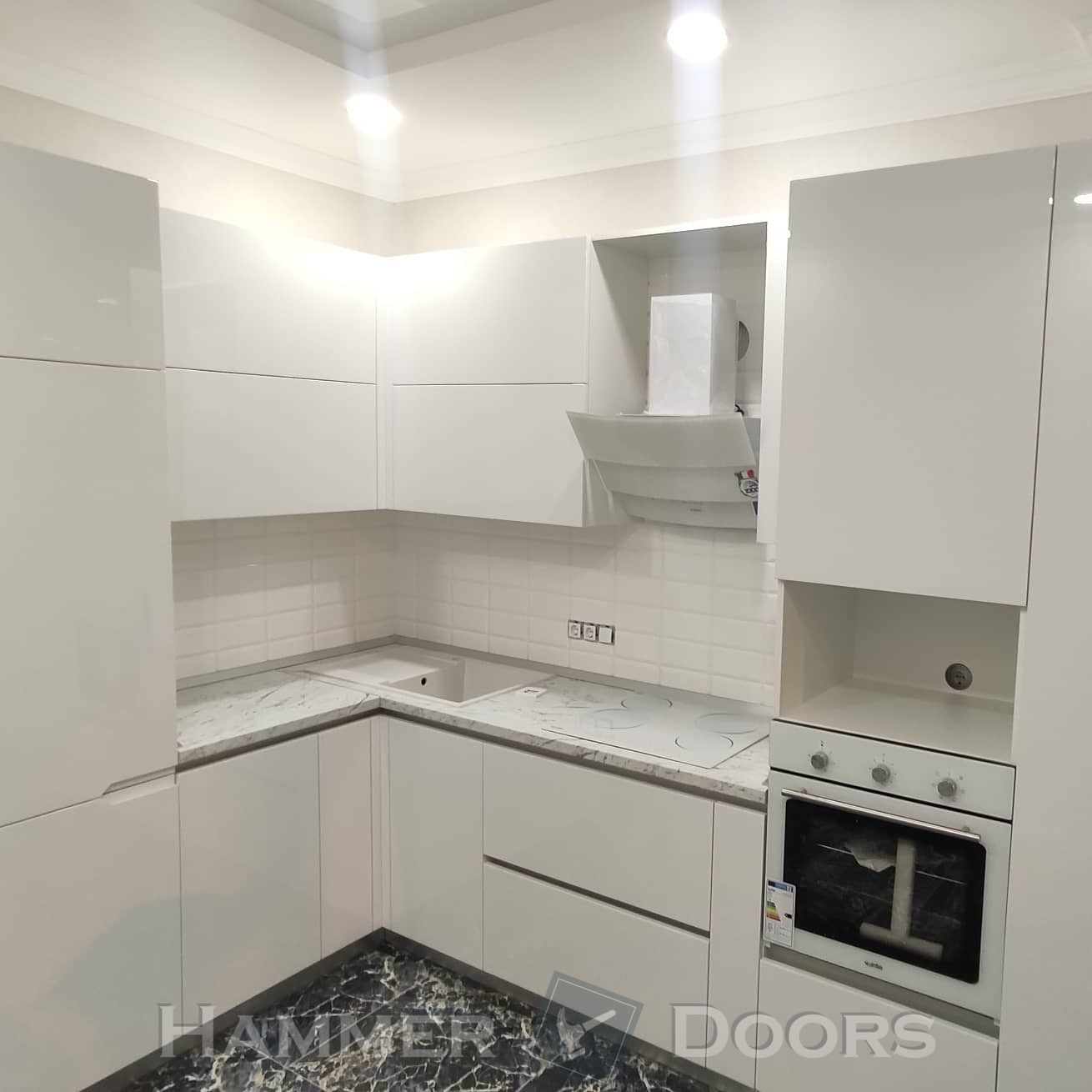 Белая кухня с крашенными фасадами