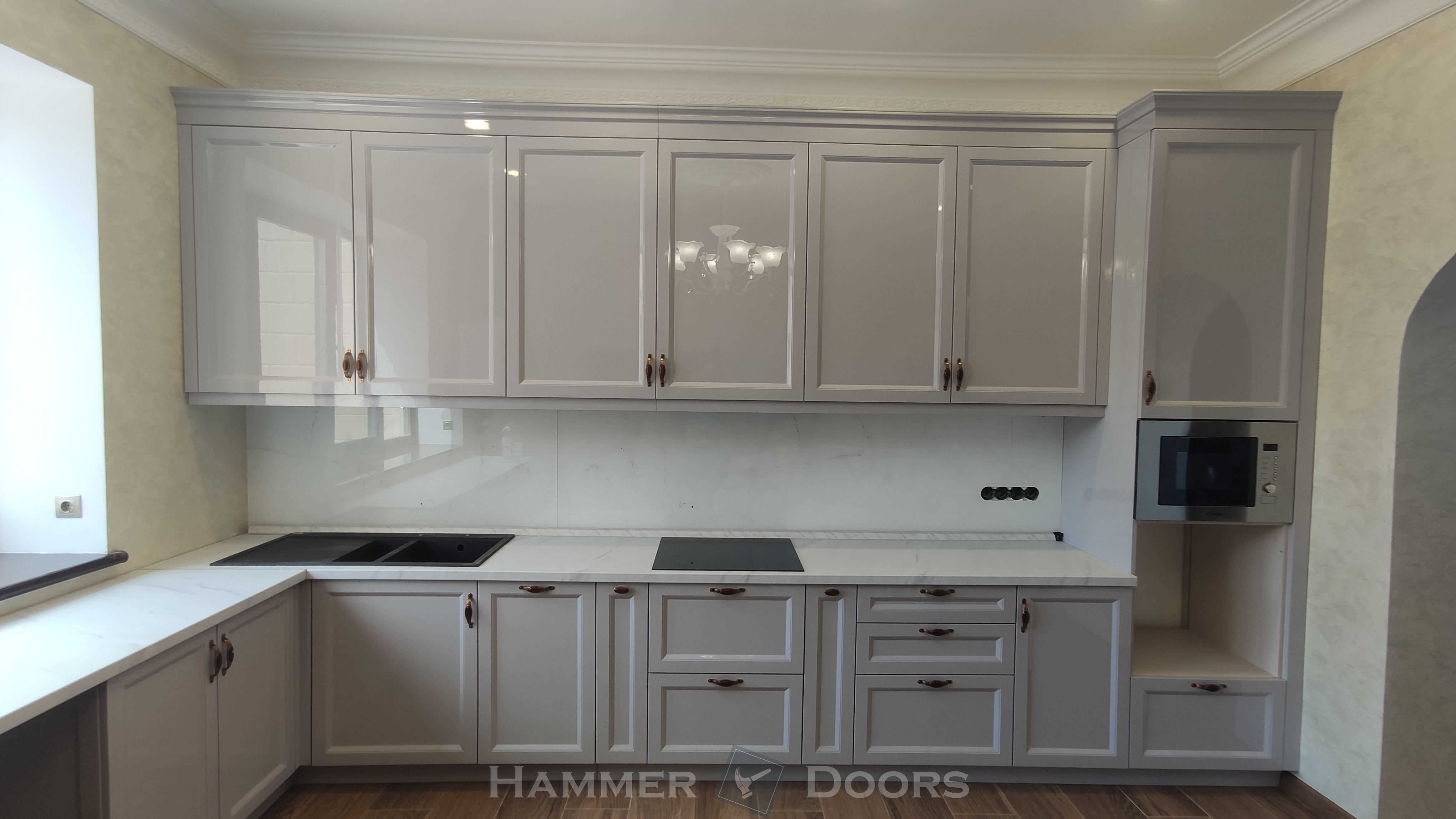 Кухня с ламинированными фасадами из МДФ , глянец.