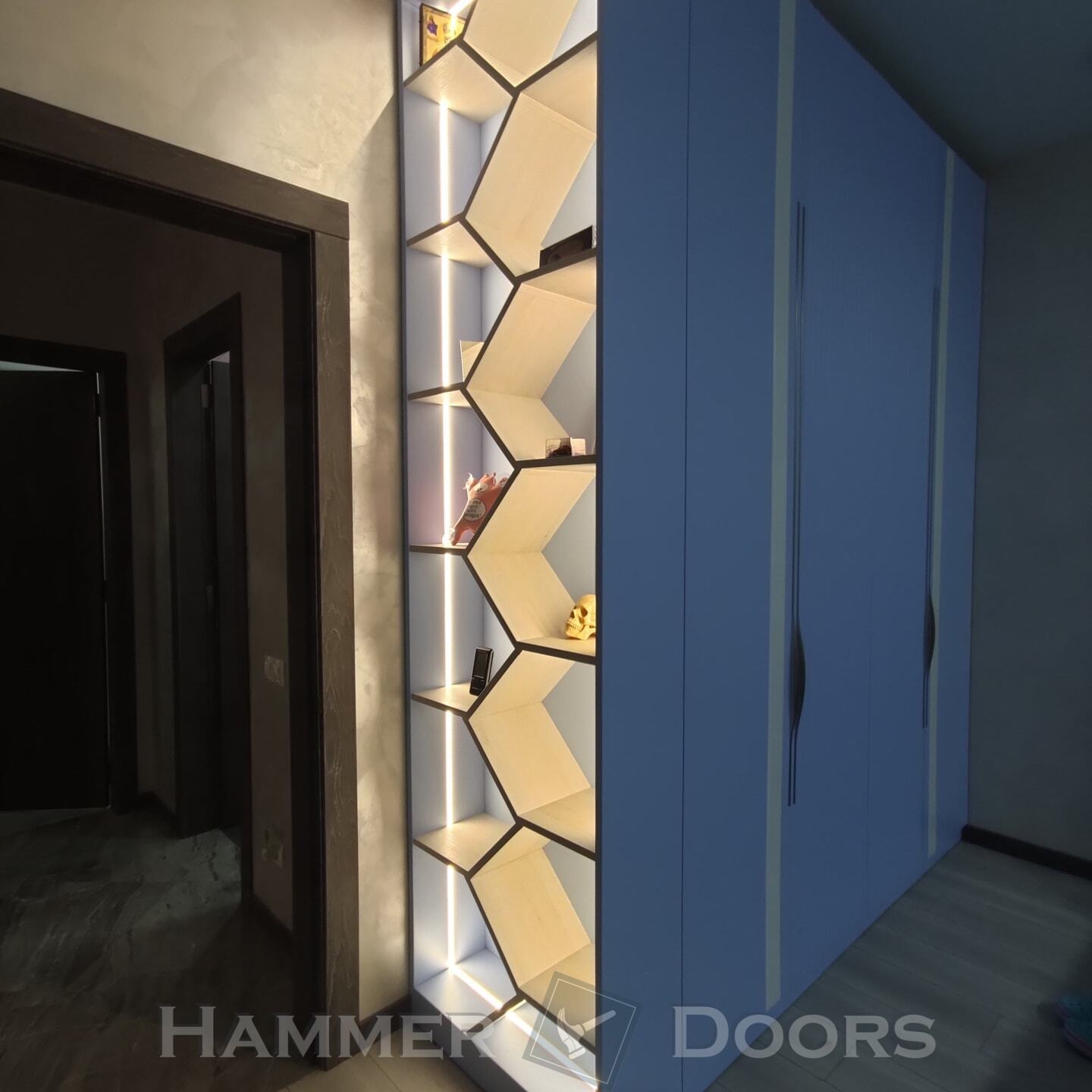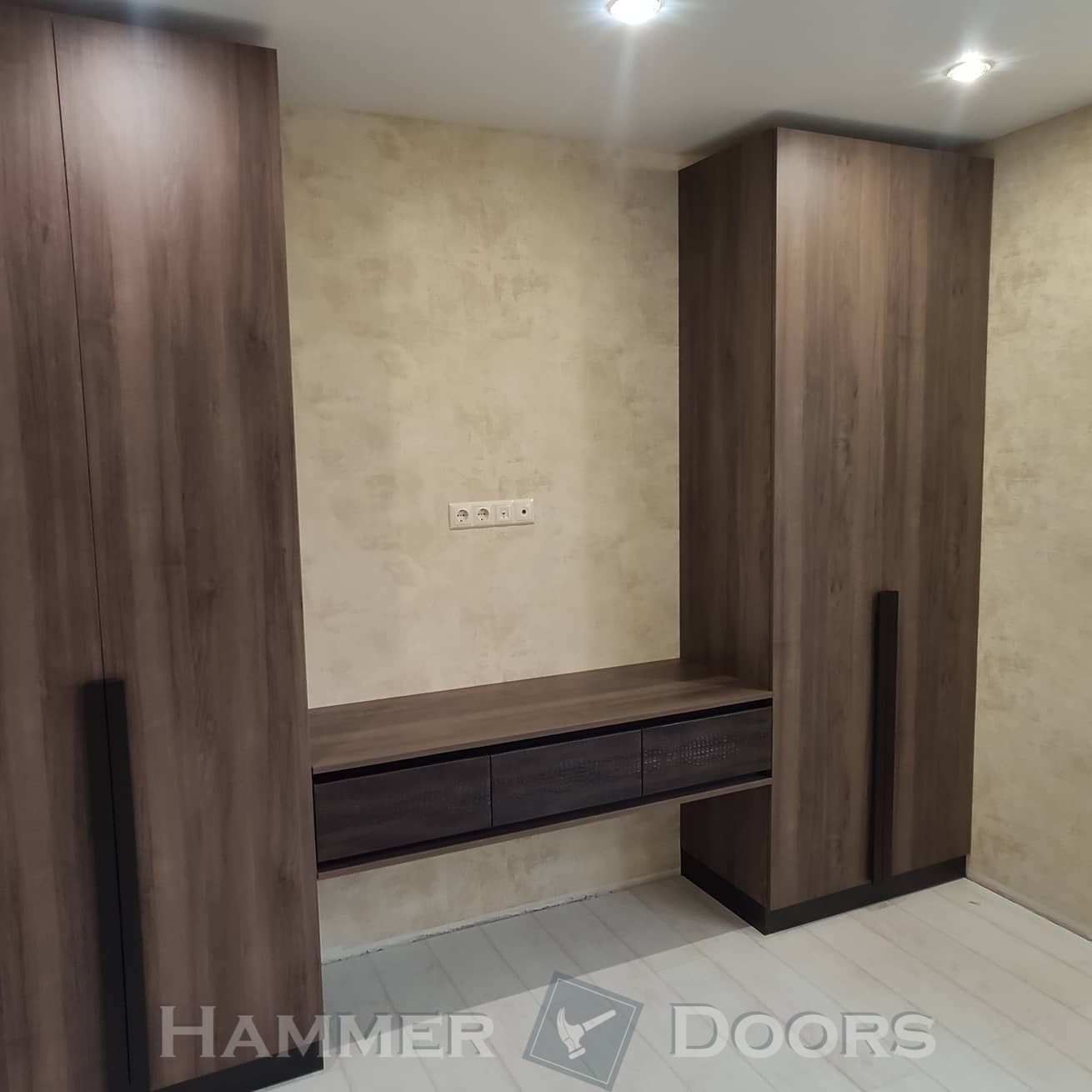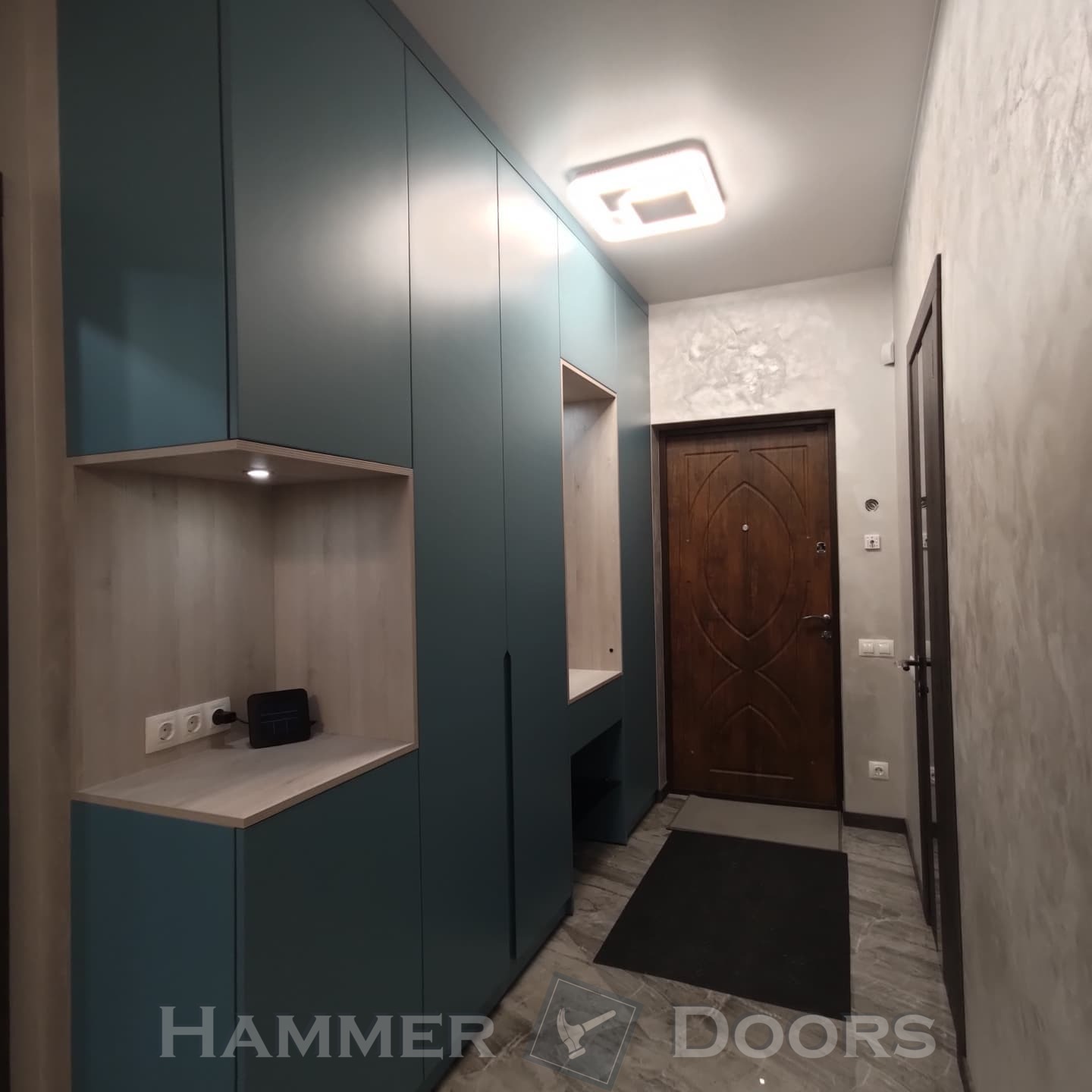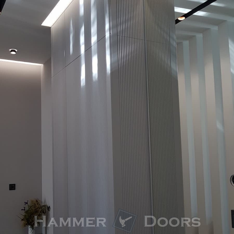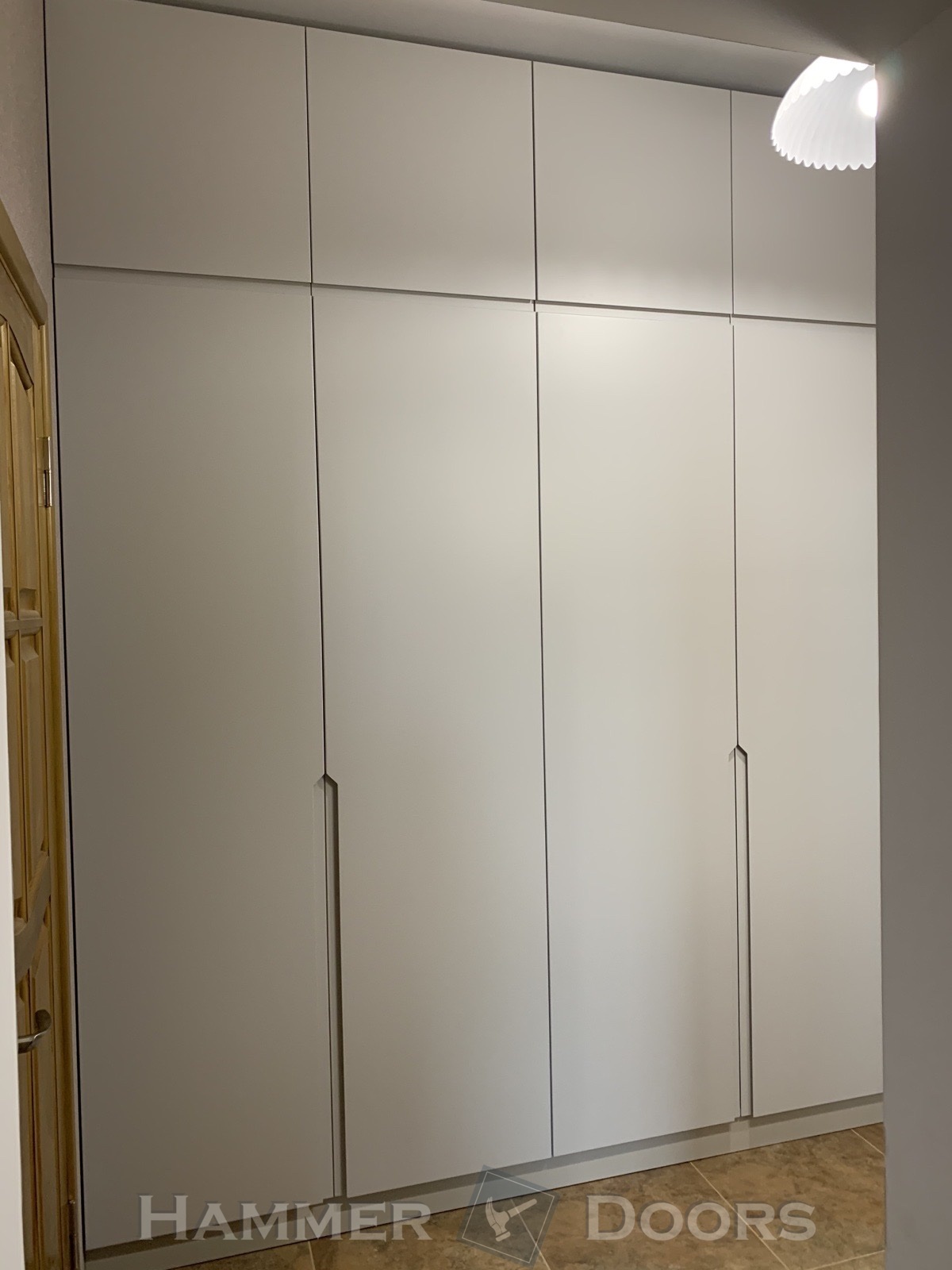Встраиваемый шкаф с фрезерованными фасадами в покраске матовой.