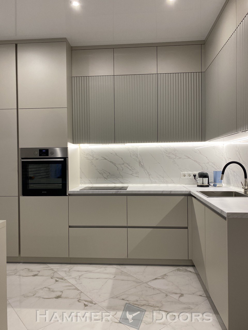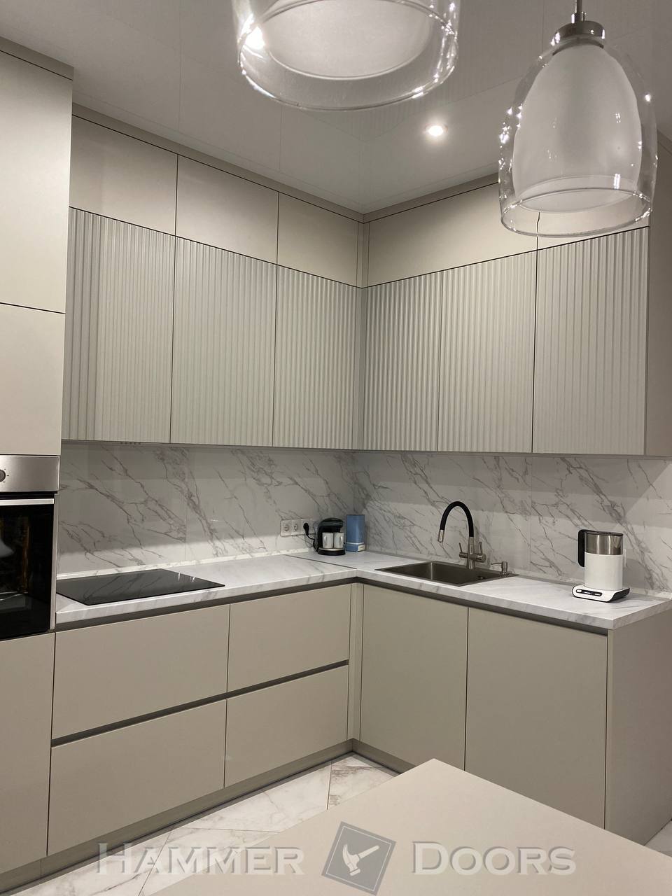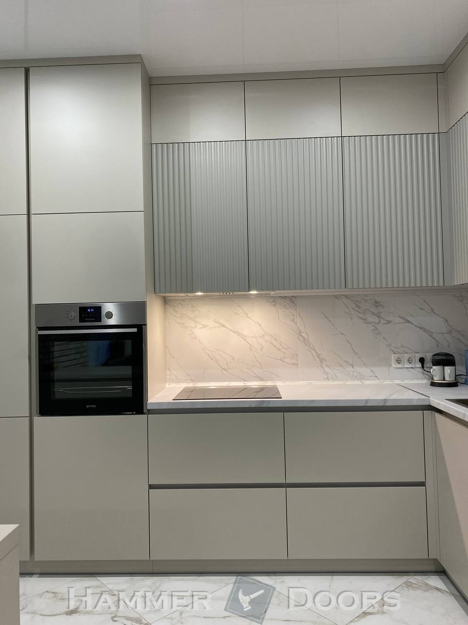 Представляем вам современную кухню c сочетанием фасадов из ламинированного ДСП и МДФ фрезерованного в покраске.
