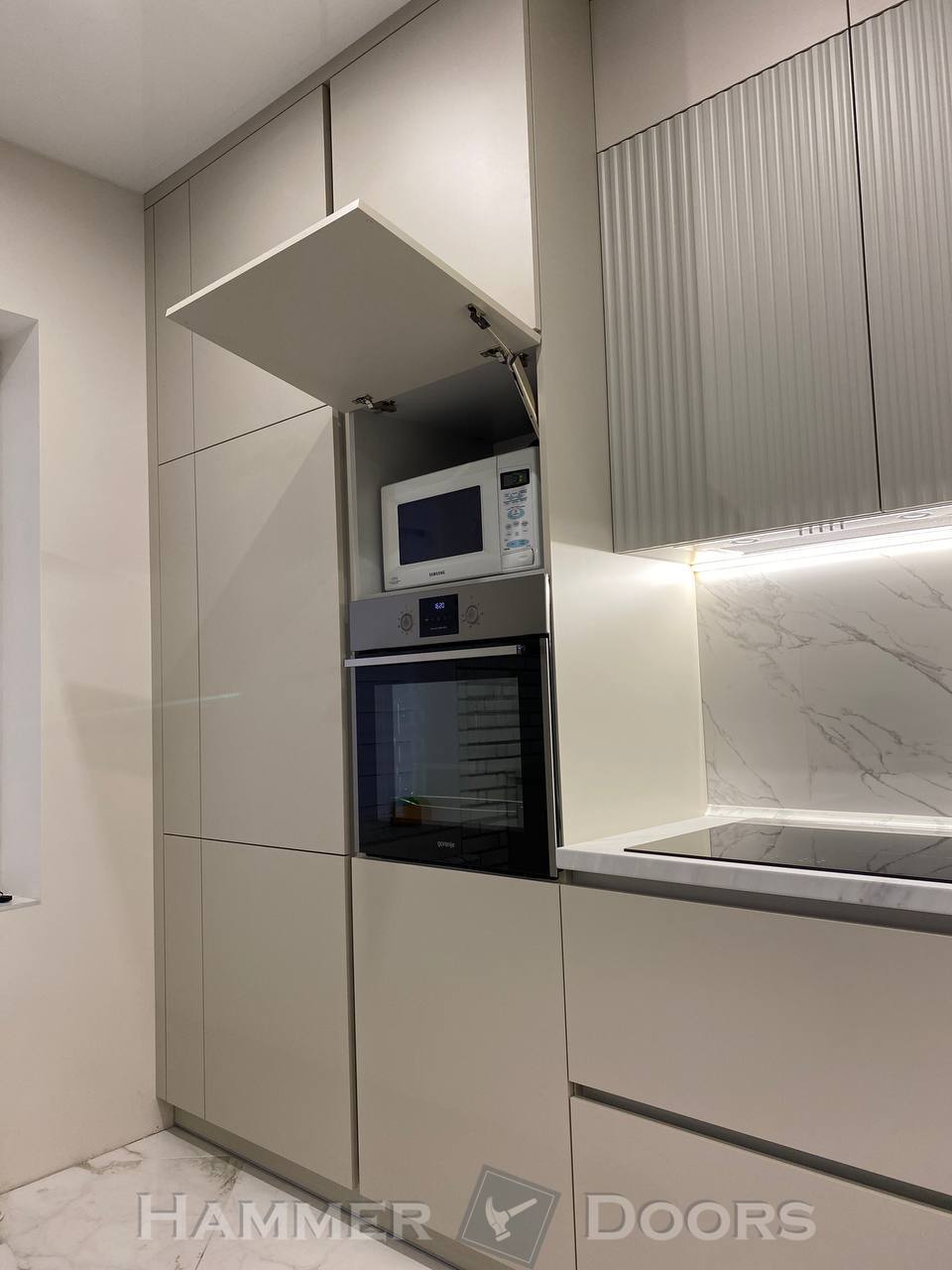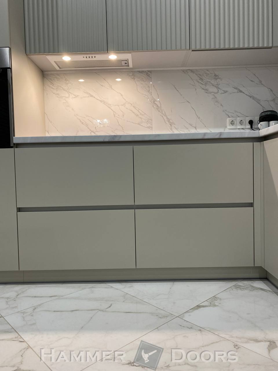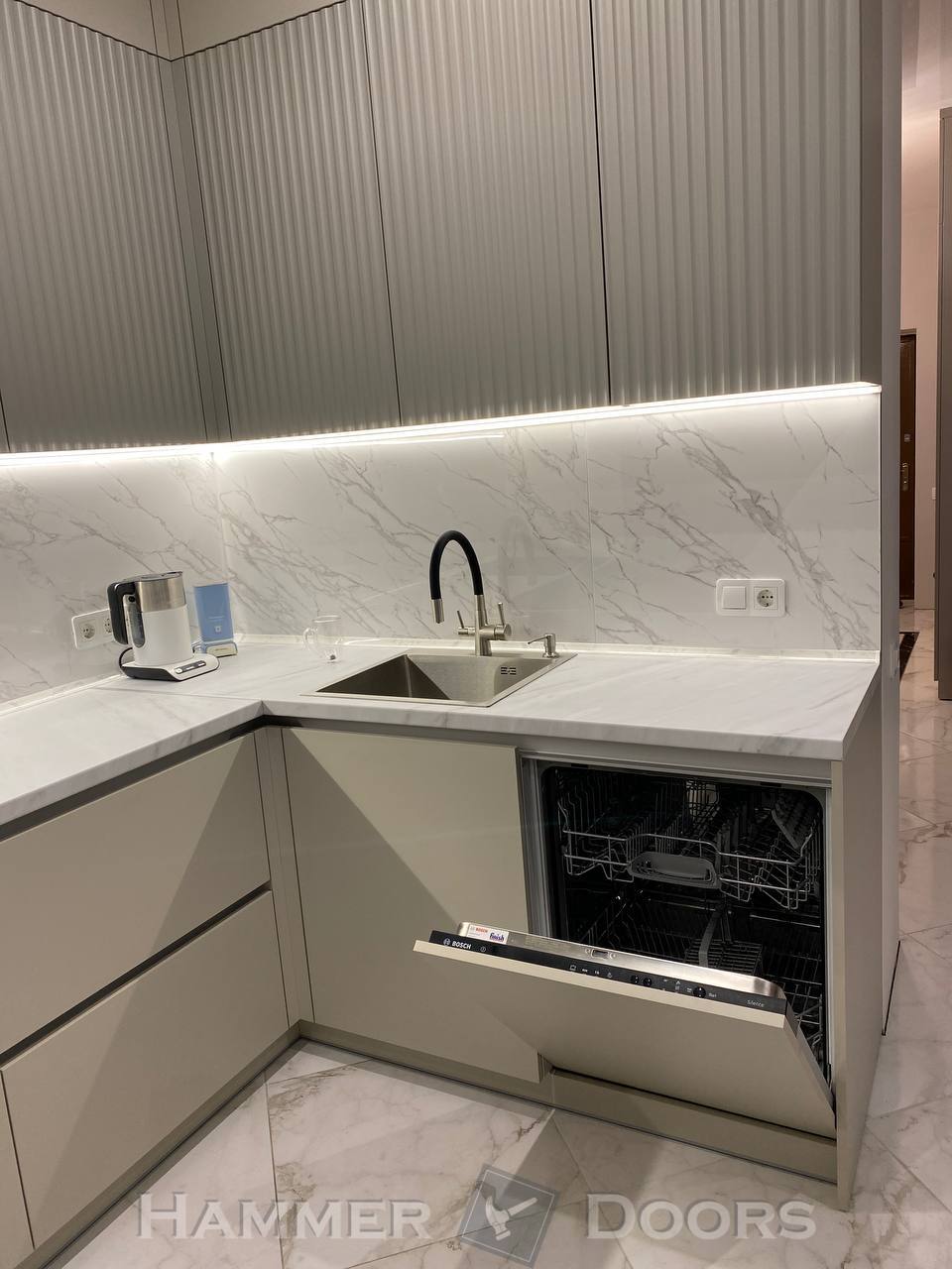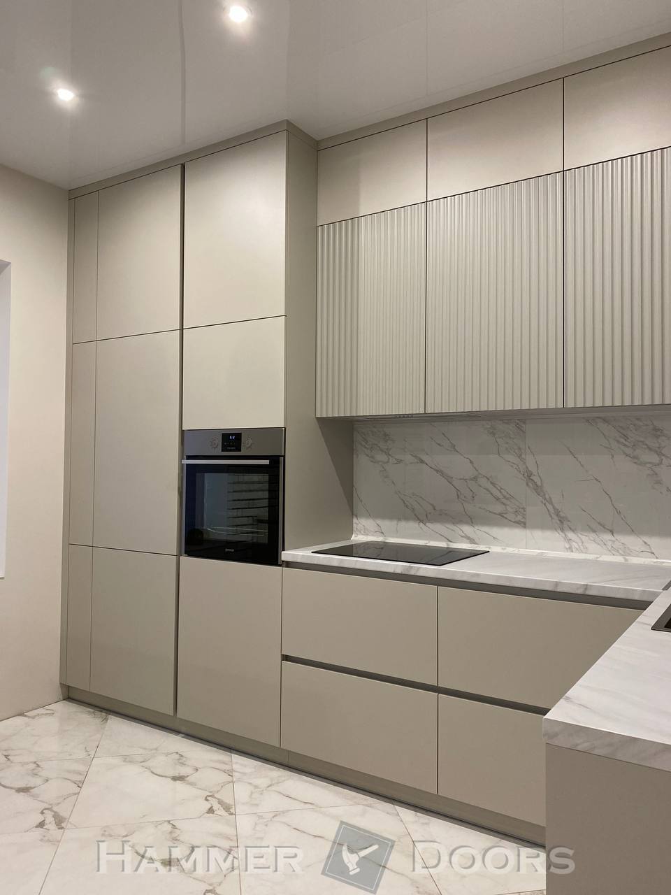 Представляем вам современную кухню c сочетанием фасадов из ламинированного ДСП и МДФ фрезерованного в покраске.