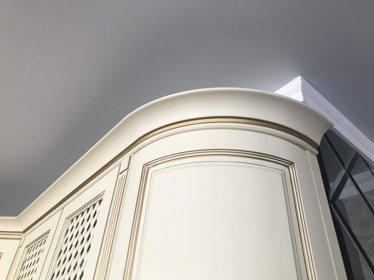 МДФ фрезерованный в покраске, белый цвет матовый, патина золото |
