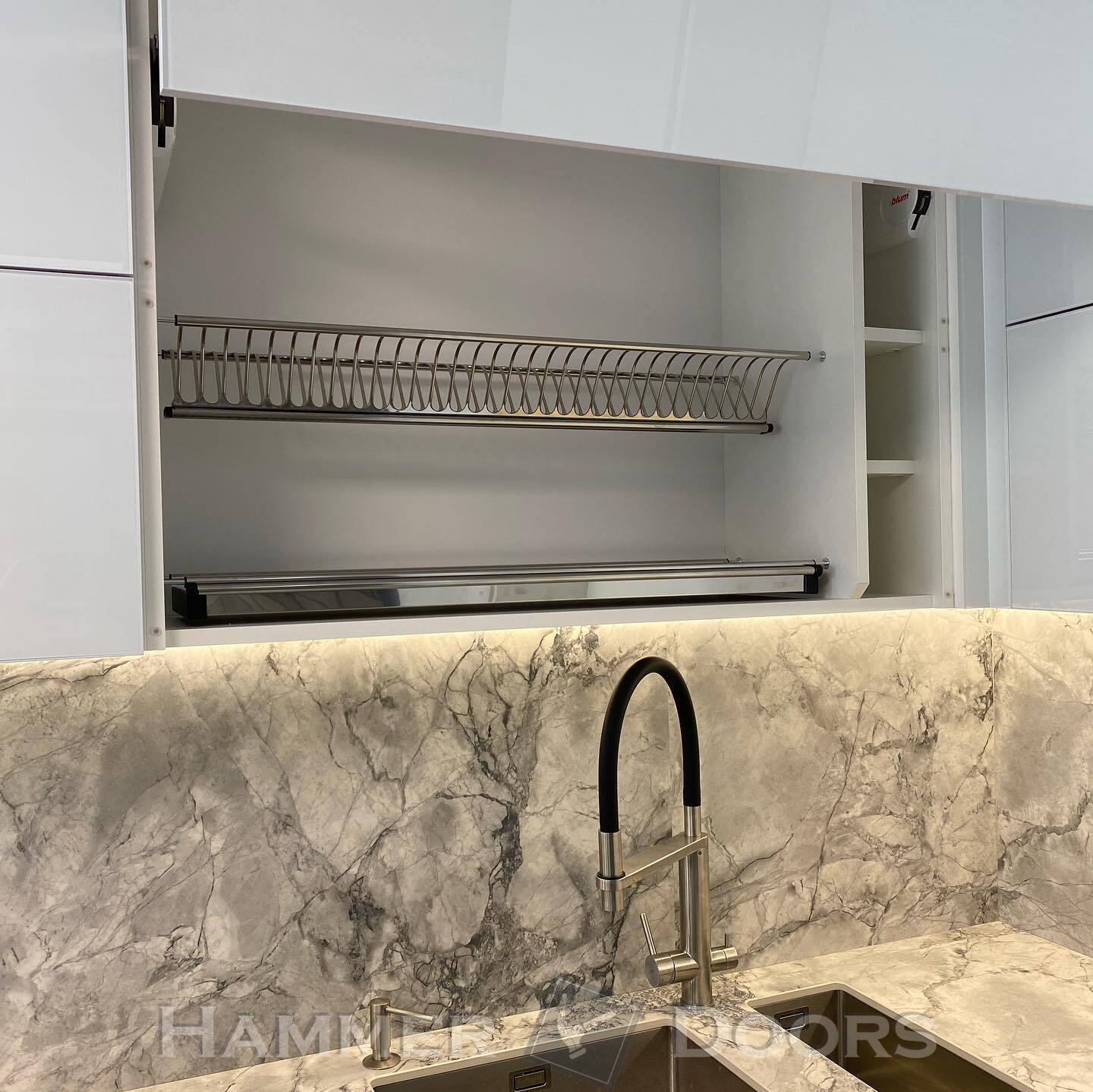 Петли BLUM (Австрия) ЯщикиTANDEM BOX ANTARA BLUM Профиль GOLA (ручка), алюминий матовый, для нижнего ряда Сушка встраиваемая для посуды, нержавеющая сталь Фраже Starax Подъемные механизмы Aventos HF, Aventos HK-XS BLUM Подсветка угловая Монтажные уши BLUM |