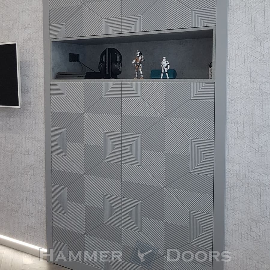 Встраиваемый шкаф с фрезерованными фасадами в покраске матовой.